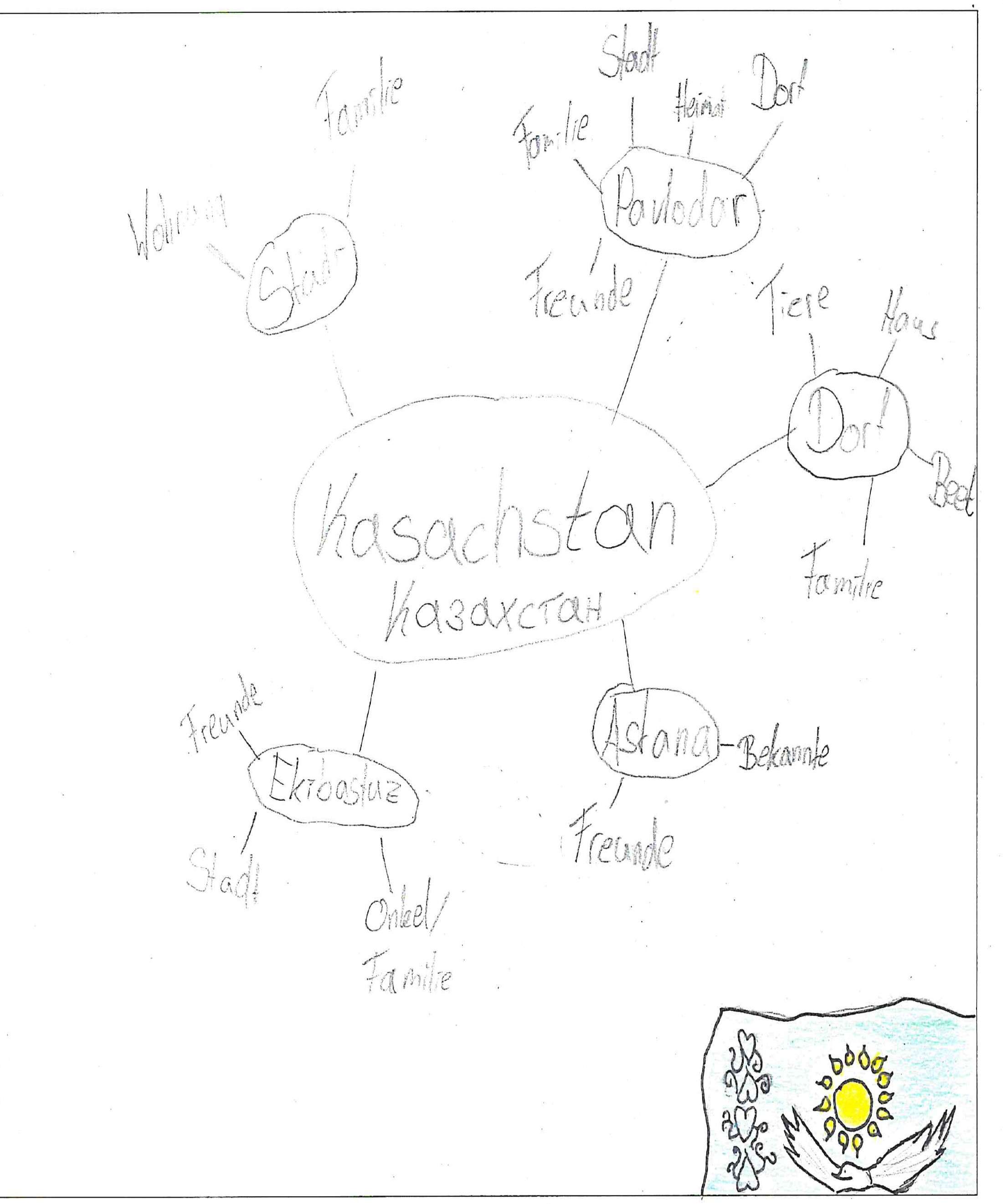 »Syrien ist für mich Heimat. Ich finde das Meer in Syrien schön. Meine Familie wohnt in Syrien. Ich laufe gerne am Meer entlang. Meine Familie und ich gehen dort syrisch essen.«